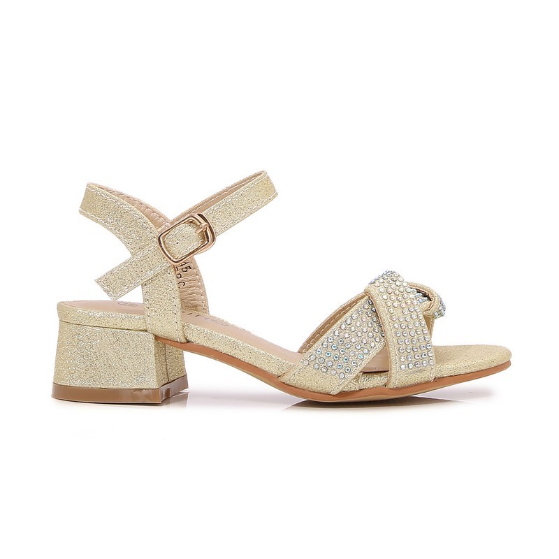 صندل للبنات مرصع بالستراس بكعب