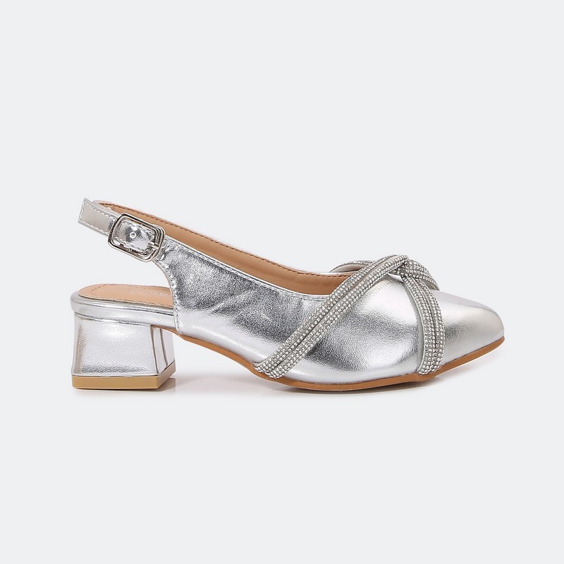 ستحب صغيرتكم ارتداء هذا الصندل من تورينو , بتصميم أنيق مغلق من الأمام مزين بالكريستال , كعب 2 سم مع حزام خلفي و إبزيم للإغلاق