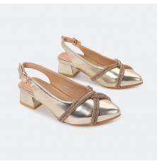G-M-L599 صندل بناتي لامع مغلق من الأمام