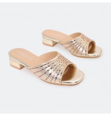 G-M-L619 نعال بناتي بكعب صغير مزين بالستراس