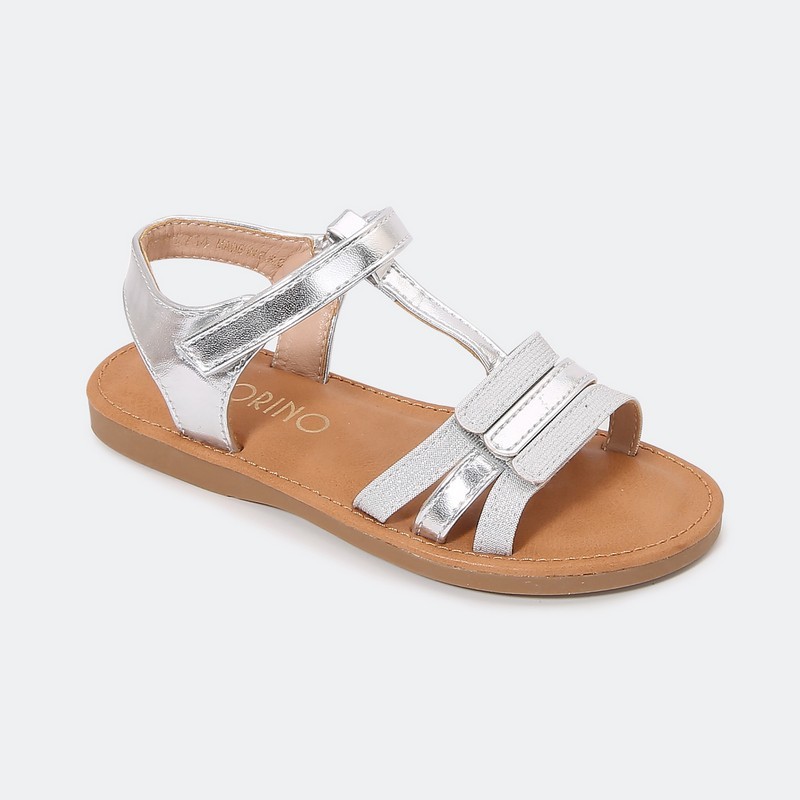 نقدم لكم صندل بناتي مسطح , بتصميم أنيق مناسب للإستخدام اليومي , مع حزام لاصق للإغلاق
