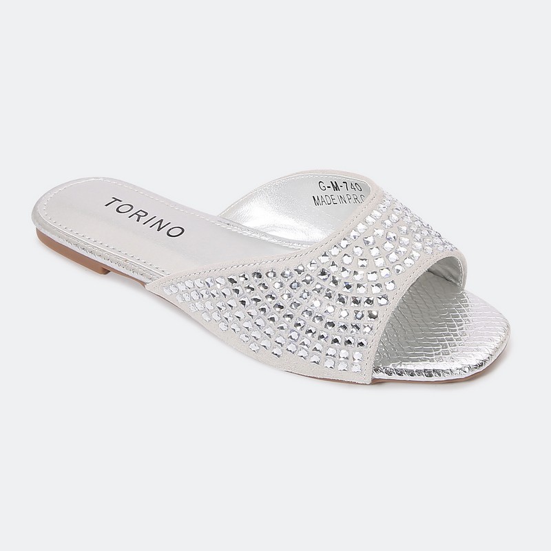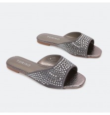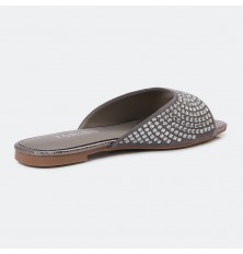 نقدم لكم نعال مسطح ذو تصميم أنيق مزين بالستراس , مريح ومناسب للإستخدام اليومي