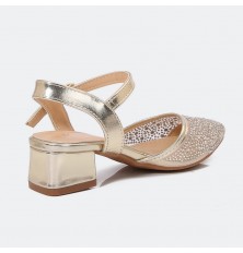 GML827 صندل بناتي ذو مقدمة من التول المرصع بالستراس