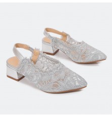 يُعد هذا الصندل خيار مثالي لإطلالة طفلتك اليومية، تصميم أنيق بمقدمة من الدانتيل الفخم, ذو كعب 3 سم ، متوفر باللونين الفضي والذهبي