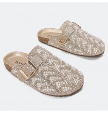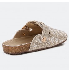 GML843 نعال مسطح بناتي مرصع بالستراس واللؤلؤ