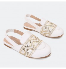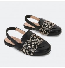 GSM773 صندل مسطح بناتي مزين بجزء من التول المطرز