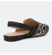 يعد هذا الصندل خيار مثالي لإطلالة طفلتك، تصميم أنيق بمقدمة من التول المطرز بشكل هندسي مميز، مع ابزيم كاحل