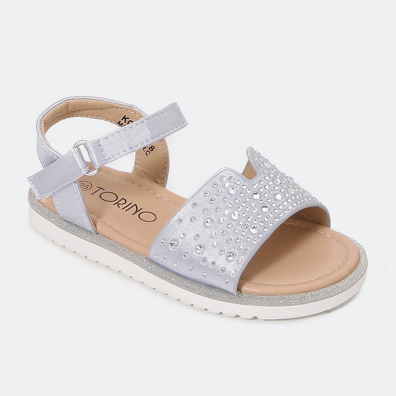صندل انثوي مسطح ومريح بجهه علوية من الجلد المزخرف بنقش جميل ومرصع بالستراس ذو ابزيم جانبي وشريط جلدي على الكاحل لإطلاله انيقه احصلي عليه الان من تورينو
