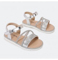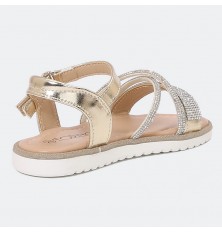 يُعد هذا الصندل خيار مثالي لإطلالة طفلتك اليومية , تصميم مميز مزين بحبل من الكريستال, مع حزام للإغلاق