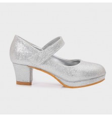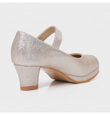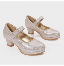 سيصبح هذا الحذاء المفضل لطفلتك ذو كعب عريض 3سم خامة من اللاميه اللامع مع ابزيم أمامي لاصق،متوفر باللونين الفضي والذهبي