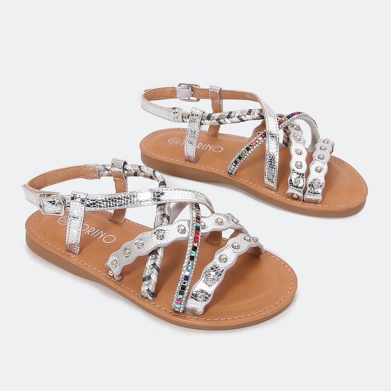 اجعلي الراحة والأناقة أساساً لإطلالة طفلتك مع هذاالصندل من تورينو بتصميم تريند بجزء من جلد الأفعى، مزين بحبل من الستراس الملون، اقتنيه الآن ولا تترددي