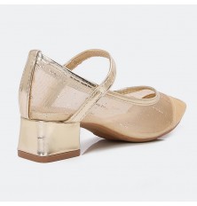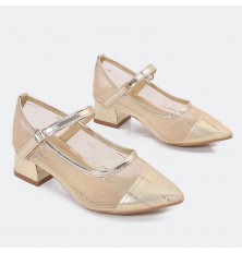 يعد هذا الحذاء خيار مثالي لإطلالة طفتك , تصميم أنيق ذو خامة مميزة بمقدمة من التول، ذو كعب 5سم ومقدمة مدببة متوفر بألوان لا غنى عنها