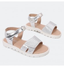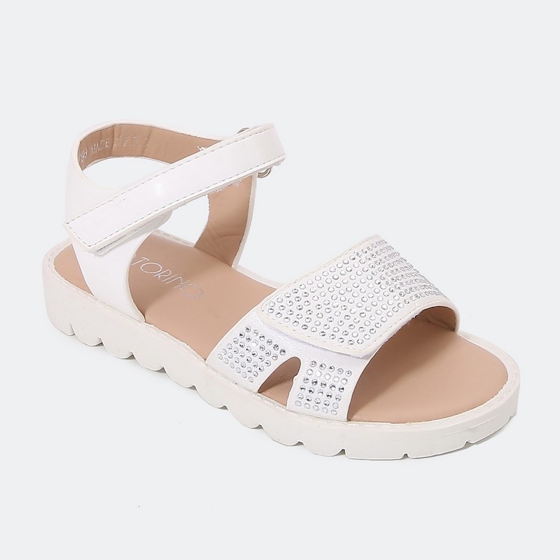 لا غنى عن هذا الصندل ضمن تشكيلة أحذية طفلتك، ذو مقدمة مفتوحة مستديرة مزينة بالستراس،اطلبيه الآن ولا تترددي