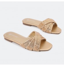 G-M-L721 نعال بناتي مسطح مزين بحبات الستراس