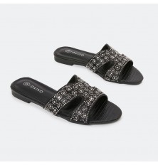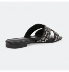 نقدم لكم نعال مسطح ذو تصميم جذاب مزين بحبات الستراس , مريح ومناسب لكافة الأوقات