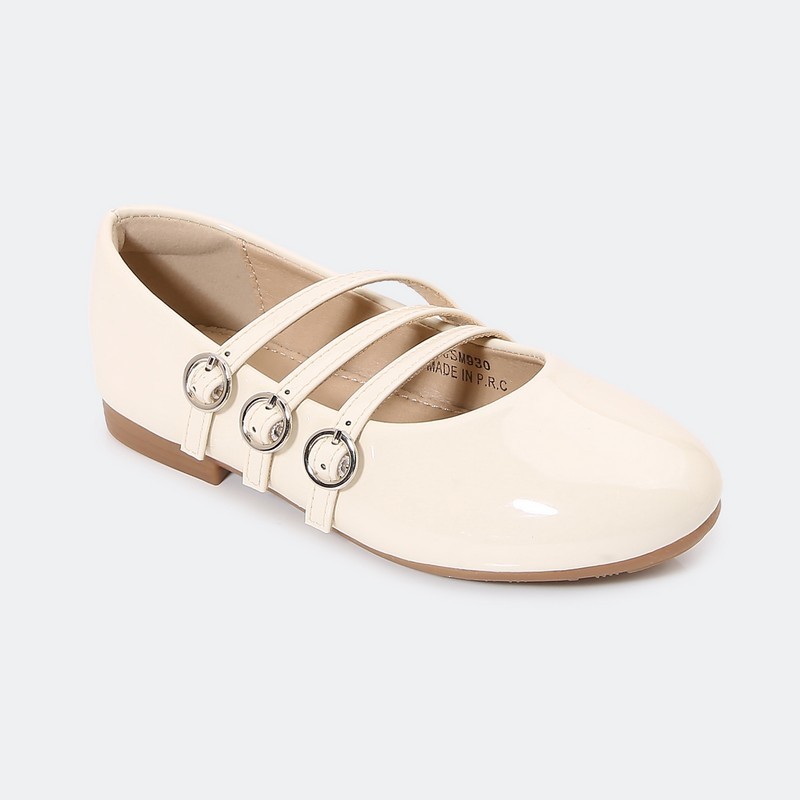 دعي طفلتك تعيش تجربة من الراحة والأناقة مثل الأميرات مع أحذية تورينو، خامة من الجلد اللامع مزينة من الأمام بإبزيم مصمم من ثلاثة أشرطة مع قفل، متاحة بألوان زاهية