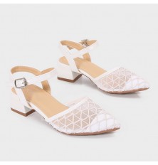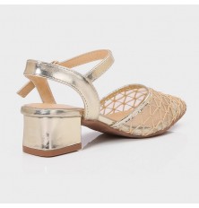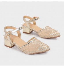 صندل كعب 3 سم ذو مقدمة مستديرة، خامة من التول بتصميم أنيق, مع ابزيم أمامي للإغلاق، يمكن تنسيقه مع إطلالات مختلفة، اختاريه لإطلالة طفلتك