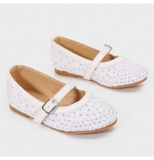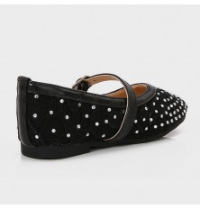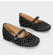 GSM958 حذاء بناتي أنيق بخامة من الدانتيل المزين بالستراس