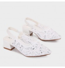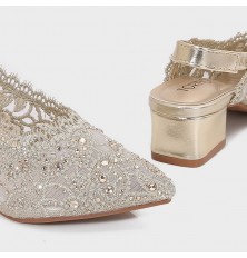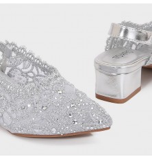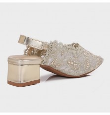 GML1102 صندل كعب بناتي ذو مقدمة مغلقة بخامة من الدانتيل