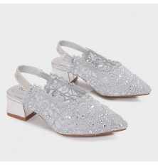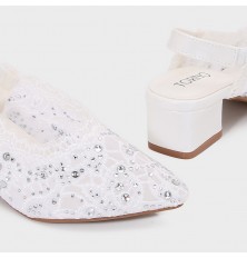 صندل كعب من تورينو , تصميم فخم بجزء من االدانتيل المزين بالستراس بشكل لافت, متوفر بألوان أساسية، مناسب لكافة الأوقات