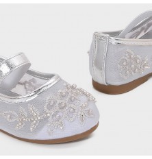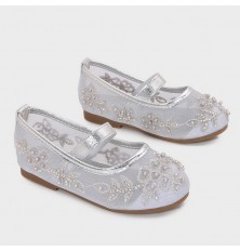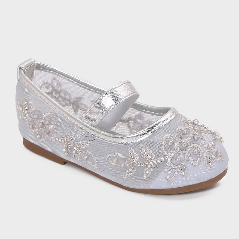 نقدم لطفلتك هذه الباليرينا من تورينو، ذو مقدمة مغلقة بخامة من التول المطرز والمزين باللؤلؤ