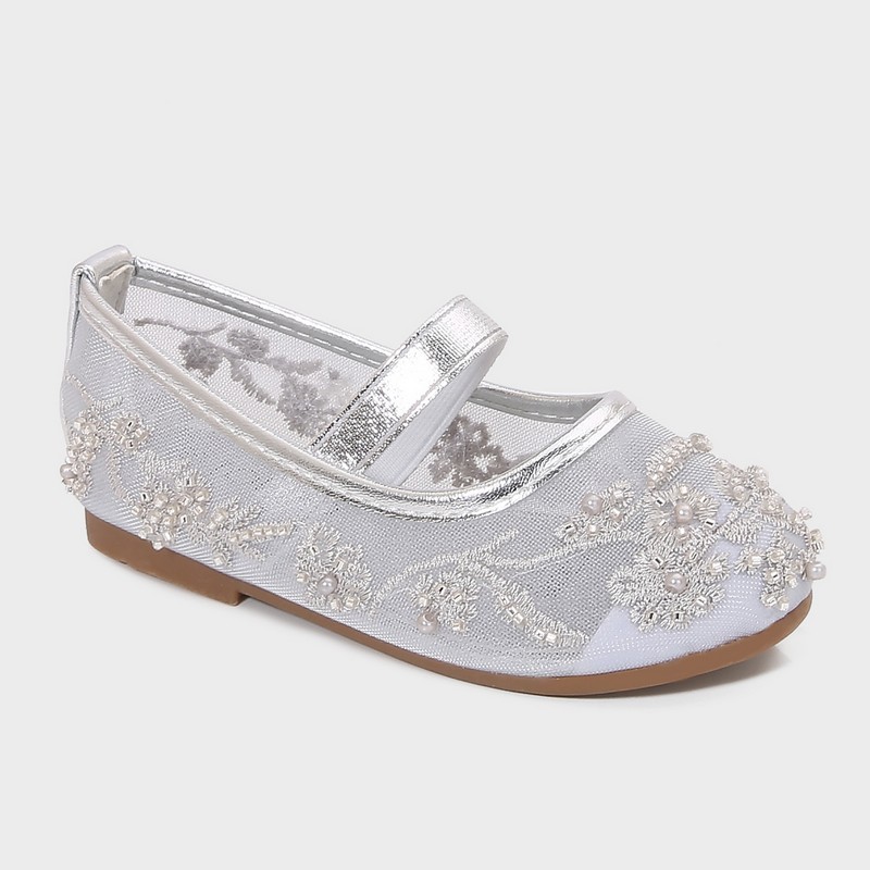 سيصبح هذا الحذاء المفضل لطفلتك , بتصميمه االعصري، مع مقدمة مغلقة من التول المطرز بشكل مميز والمزين باللؤلؤ، مريحة و يمكن تنسيقها مع خيارات مختلفة