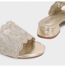 GML1034 نعال كعب بناتي أنيق بخامة من الدانتيل