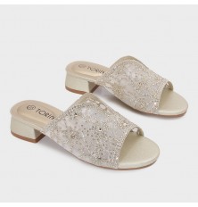 GML1035 نعال كعب بناتي بمقدمة من التول