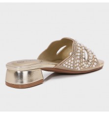 GML1039 نعال كعب بناتي مرصع بالستراس والآلئ