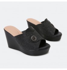 تألقي مع هذا النعال بكعب 9 سم , يتميز بتصميم أنيق مزين بإكسسوار ناعم , و أرضية مدعمة مريحة للإستخدام اليومي