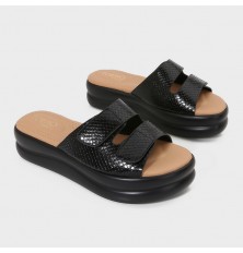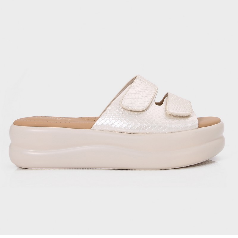 متجر تورينو يهتم براحتك وأناقتك طوال الوقت لذلك يقدم لك نعال روكي 4 سم, بنقشة جلد الأفعى وتصميم أنيق ، متوفر باللونين الأبيض والأسود