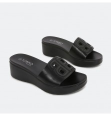 نعال نسائي بكعب ويدجزمن الجلد مزخرف برسمة تريندي وعصرية مريح للارتداء اليومي احصلي عليه الان