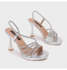 لإطلالة راقية يقدم لك متجر تورينو صندل فخم مزين بحبال الكريستال اللامع، ذو نعل سميك وكعب 9 سم، مناسب للحفلات