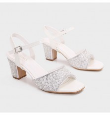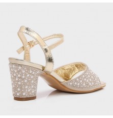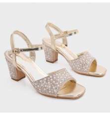 نقدم لكِ هذا الصندل من تورينو, ذو كعب عريض مزين بالستراس واللؤلؤ 5 سم ومقدمة مربعة مفتوحة, تصميم أنيق مزين بالستراس بتنسيق مميز