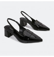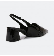 نقدم لكِ هذا الصندل بتصميم عملي ومريح وأنيق من الجلد اللامع، مع كعب عريض 3سم، مع حزام كاحل، متوفر بألوان لا غنى عنها
