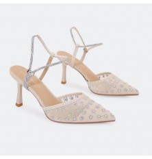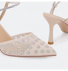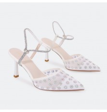 HSQB100 صندل أنيق بخامة من التول مزين بالستراس