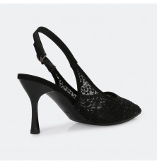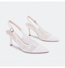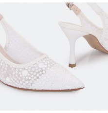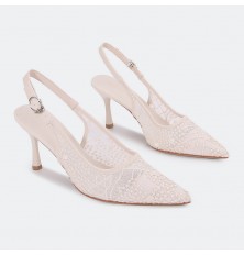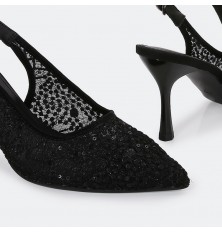 يُعد هذا الصندل خيار مثالي لإطلالتك في كافة الأوقات، ذو كعب 7 سم، تصميم أنيق بمقدمة مغلقة من التول المطرز، مع حزام كاحل للإغلاق، متوفر بألوان يمكن تنسيقها مع خيارات مختلفة