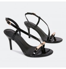 نقدم لكِ هذا الصندل من تورينو، تصميم كلاسيكي بخامة من الجلد اللامع، مقدمة مستديرة مزينة بإكسسوار ذهبي, متوفر بألوان يمكن تنسيقها مع خيارات مختلفة