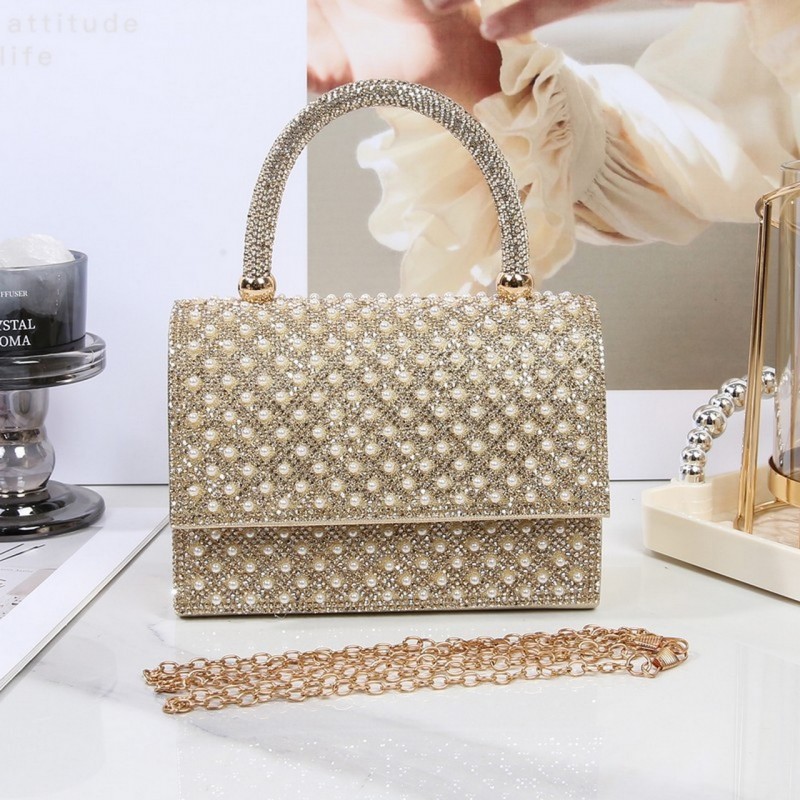 أضيفي لمسة من الأناقة والرقي إلى إطلالاتك مع هذه الحقيبة، مزينة باللؤلؤ البراق، متوفرة بألوان يمكن تنسيقها مع اطلالات مختلفة