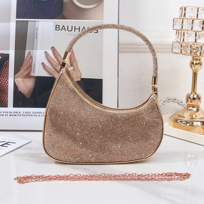 حقيبة سهرة لامعة بمقبض يد مزين بالكريستال وبتصميم أنيق جذاب مرصع بالأحجار اللامعة، تبرز حضورك نقدمها لك من تورينو بألوان كلاسيكية