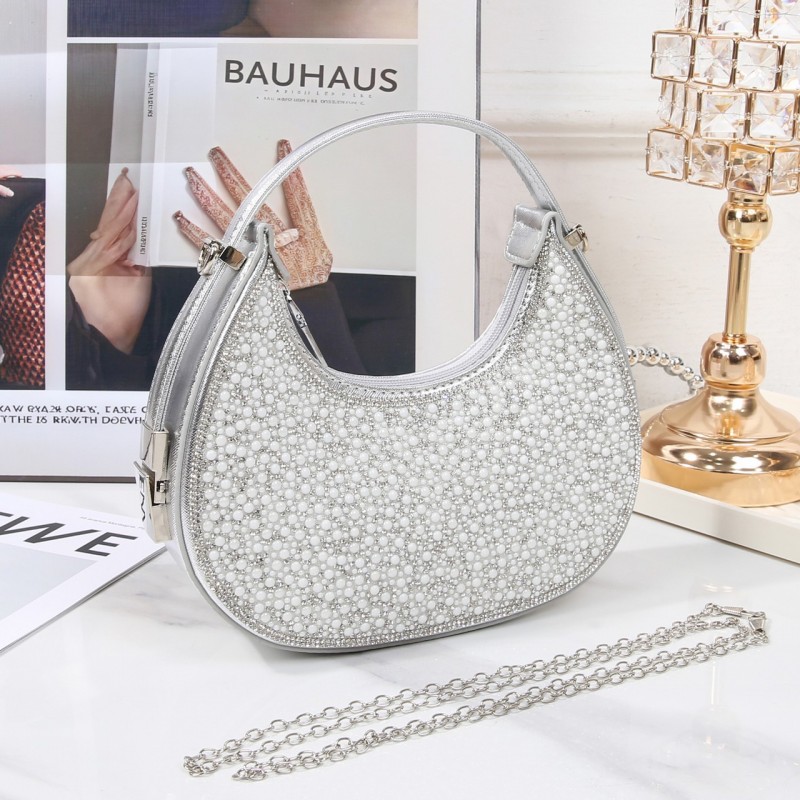 JD143 حقيبة سهرة لامعة مرصعة باللآلئ