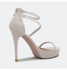 صندل مناسبات بلاتفورم كعب رفيع عالي بشرائط مرصعة من الستراس