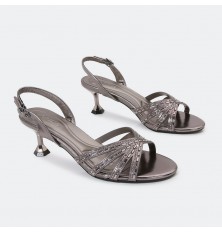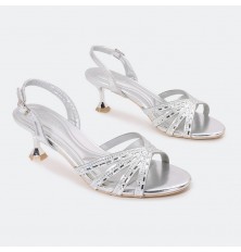 نقدم لكِ صندل ذو كعب 5 سم , تصميم أنيق مزين بالستراس , مريح ومناسب لكافة الأوقات