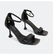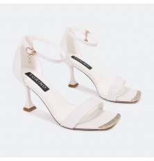 نقدم لكِ صندل نسائي بكعب 7 سم , تصميم مميز ذو مقدمة مربعة , حزام كاحل و إبزيم للإغلاق . مناسب لكافة الأوقات