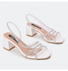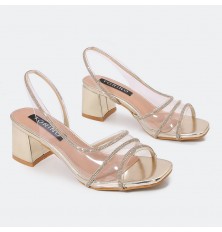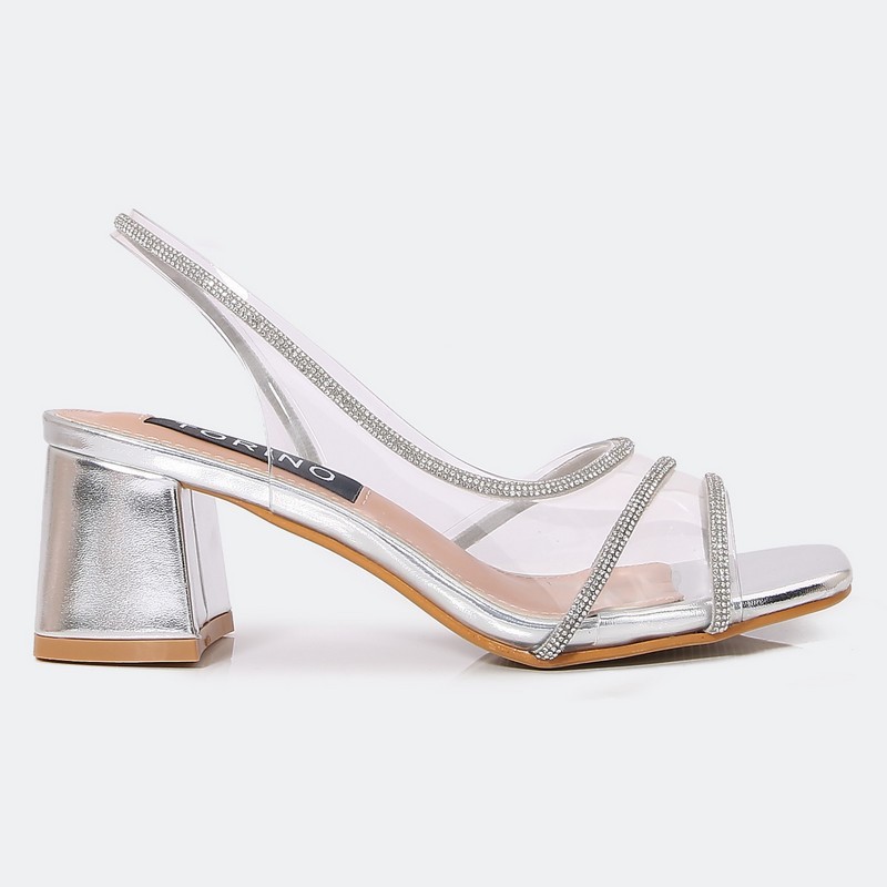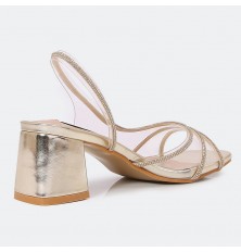 سيصبح هذا الصندل المفضل لديك بكعب عريض 5سم، ذو تصميم أنيق بمقدمة مفتوحة مربعة شفافة مزينة بحبال من الكريستال، يمكن تنسيقه مع إطلالات مختلفة