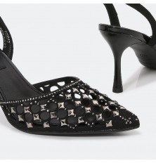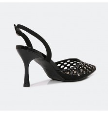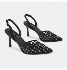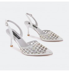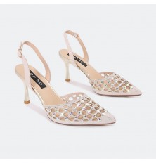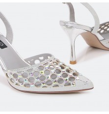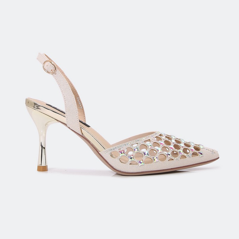 ستكتمل إطلالتك مع هذا الصندل ذو كعب 7 سم وتصميم فخم مفرغ مزين بالستراس , يمكن تنسيقه مع إطلالات مختلفة