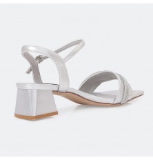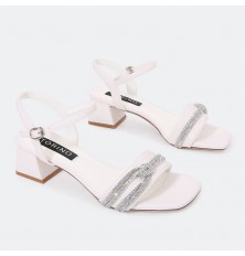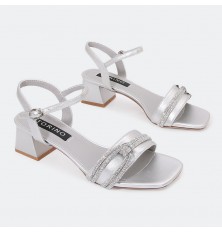 نقدم لكِ صندل ذو كعب 4 سم , بتصميم مميز مزين بالكريستال , حزام كاحل و إبزيم للإغلاق , مريح ومناسب لكافة الأوقات