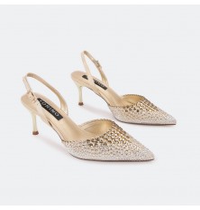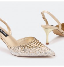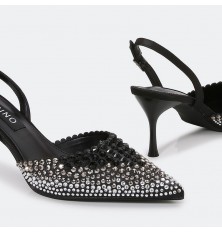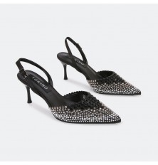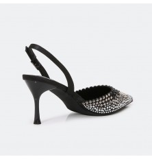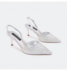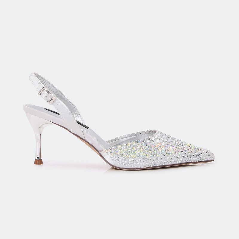 تألقي مع هذا الصندل ذو كعب 7 سم , ومقدمة مدببة مغلقة مزين بحبات الستراس البراق , حزام كاحل و إبزيم للإغلاق , مناسب لكافة الأوقات