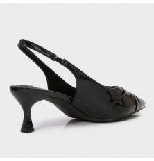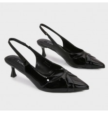 بتصميم أنيق وعملي نقدم لكِ هذا الصندل, ذو مقدمة مغلقة ومدببة مع حزام كاحل، كعب 5 سم، سهل الإرتداء، ومناسب للإستخدام اليومي