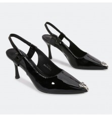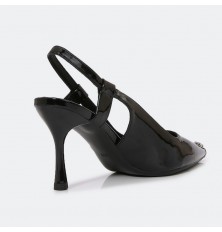 HSQB64 صندل كعب ذو مقدمة مدببة بخامة من الجلد اللامع